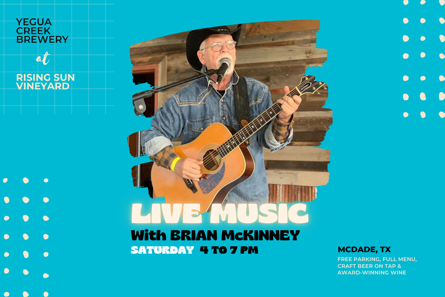 Join us for live music with Brian McKinney! Brian is a local favorite, and you may know him from the famous Elgin band, The Gypsy Drifters.