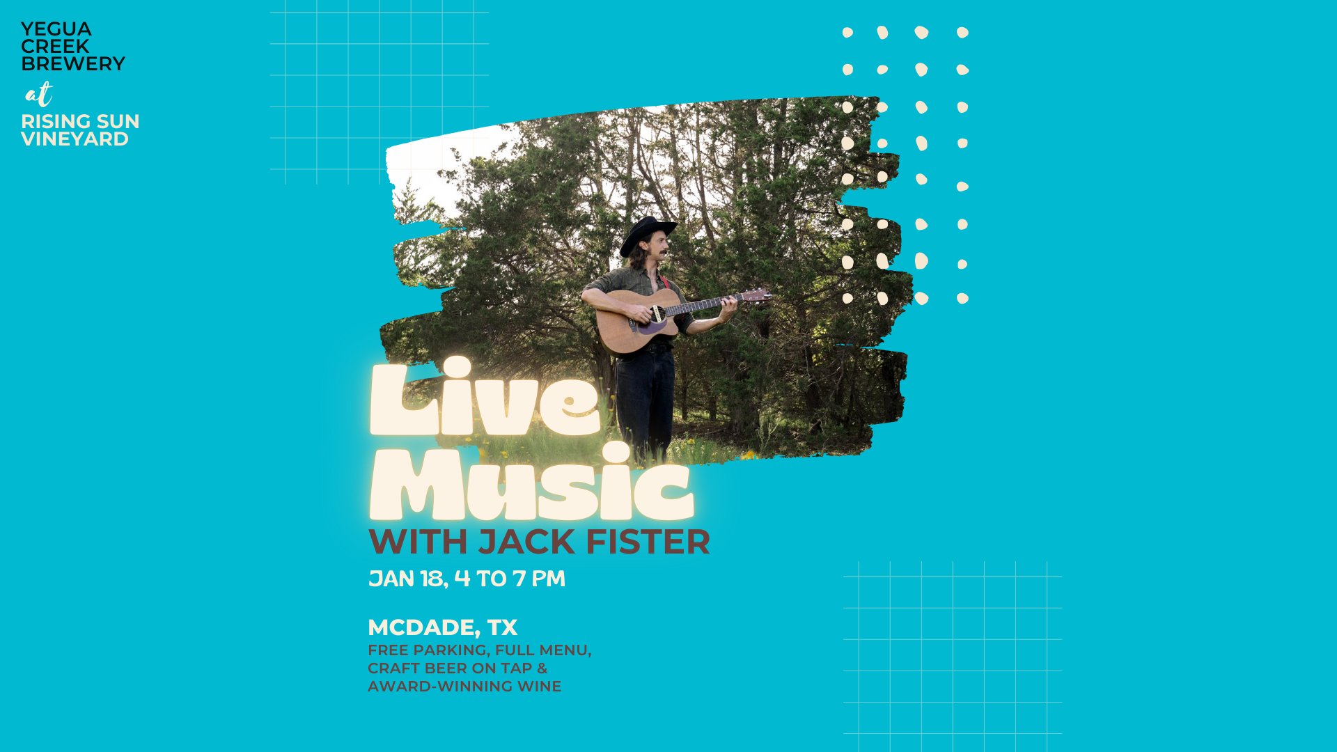 Join us for live music with Jack Fister on our beautiful rural stage from 4-7pm. Jack Fister is a rock and country-blues guitar picker currently based in Austin, Texas. He […]