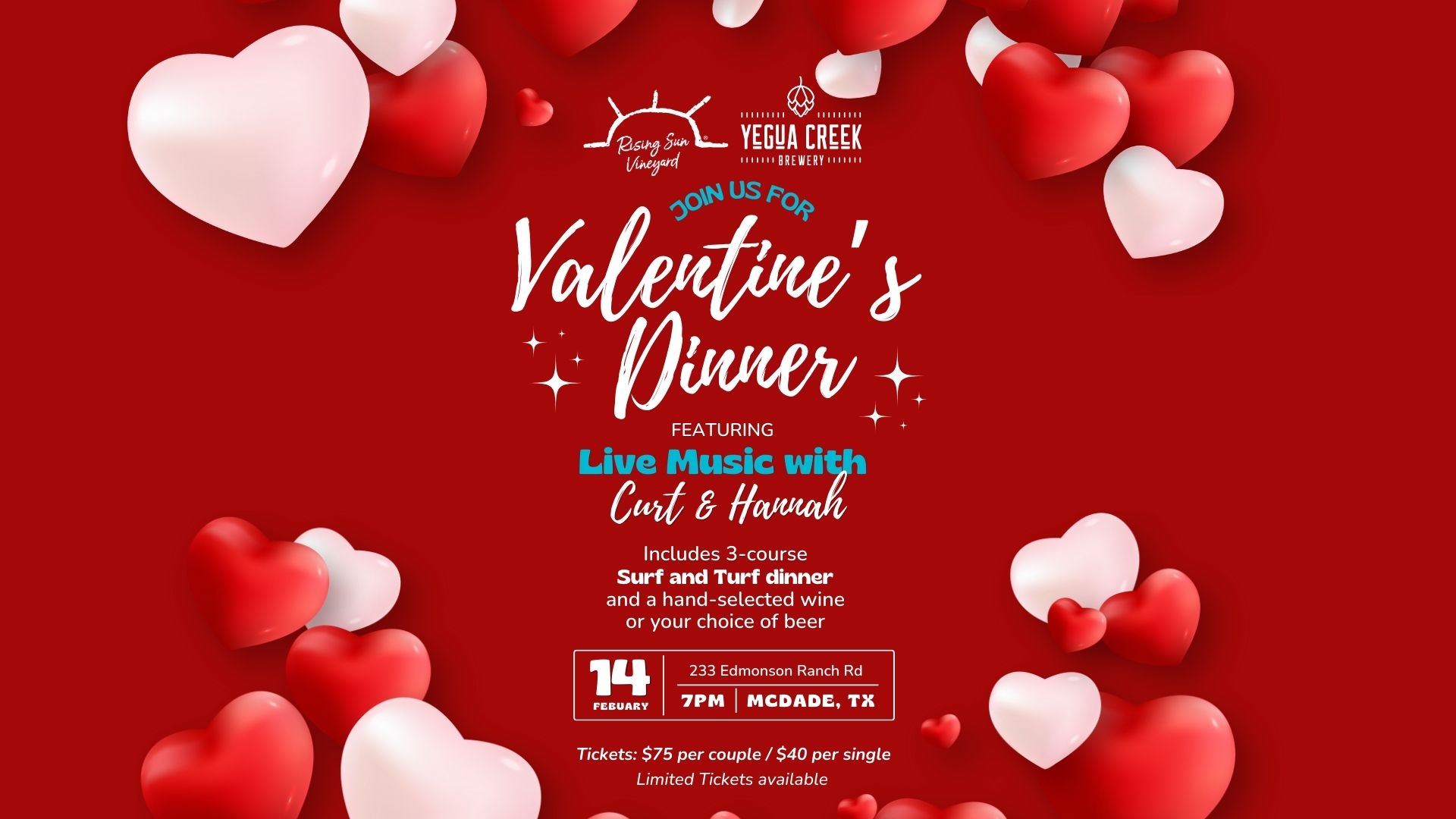 (SOLD OUT) Join us for a romantic countryside Surf and Turf dining experience at Rising Sun Vineyard and Yegua Creek Brewery this Valentines Day!