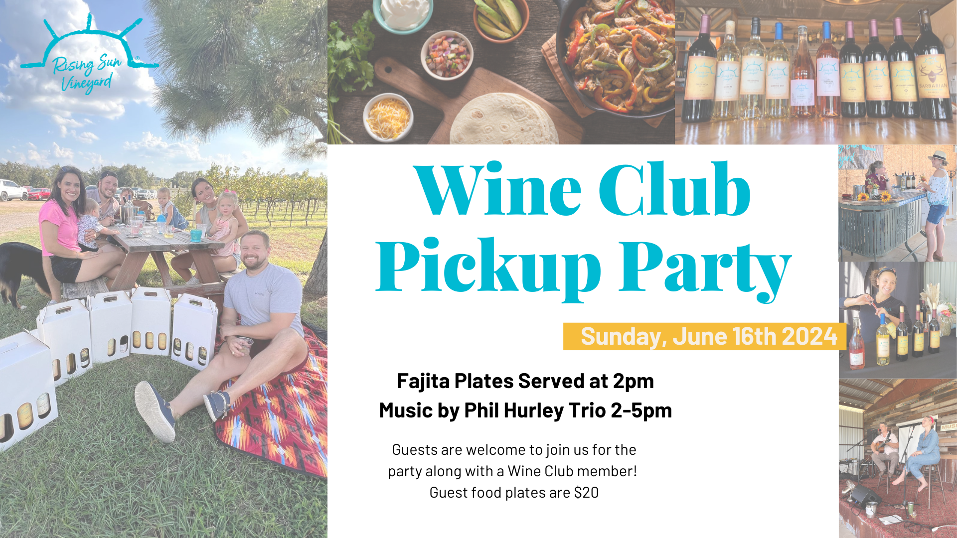 *if you are not able to make it to the pickup party, please email wineclub@risingsunvineyard.com with the time/date you will be able to pick your box up. Boxes will be shipped to your address on file 2 weeks after the pickup party if we do not hear from you.